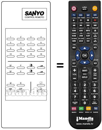 Télécommande qui remplace celle d'origine car elle possède les mêmes fonctions.