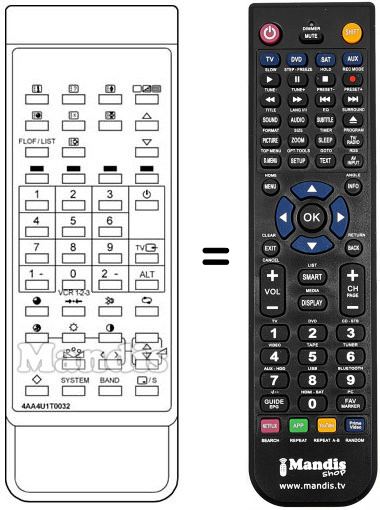 Télécommande qui remplace celle d'origine car elle possède les mêmes fonctions.