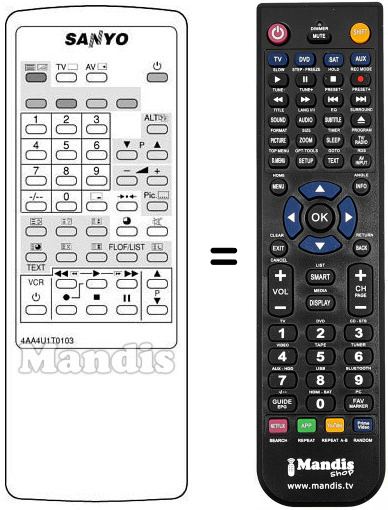 Télécommande qui remplace celle d'origine car elle possède les mêmes fonctions.