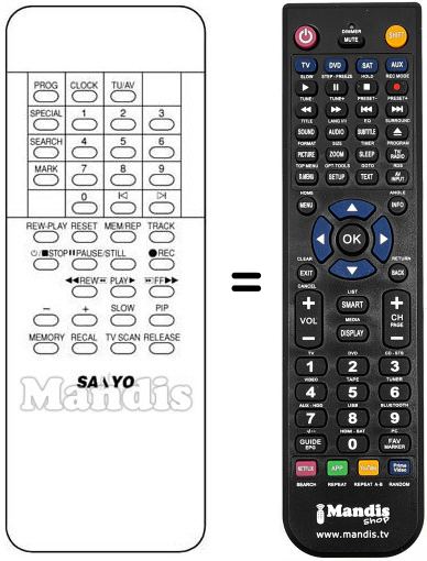 Télécommande qui remplace celle d'origine car elle possède les mêmes fonctions.