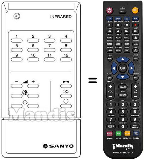Télécommande qui remplace celle d'origine car elle possède les mêmes fonctions.