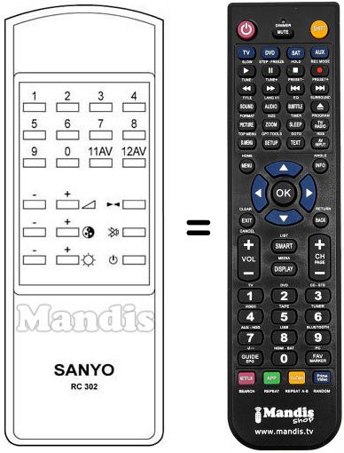 Télécommande qui remplace celle d'origine car elle possède les mêmes fonctions.