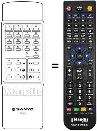 Télécommande qui remplace celle d'origine car elle possède les mêmes fonctions.