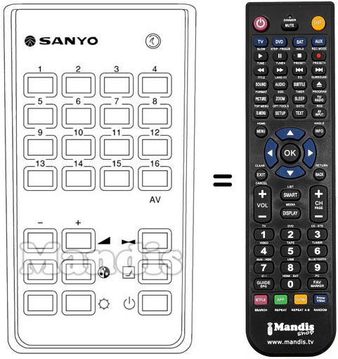 Télécommande qui remplace celle d'origine car elle possède les mêmes fonctions.