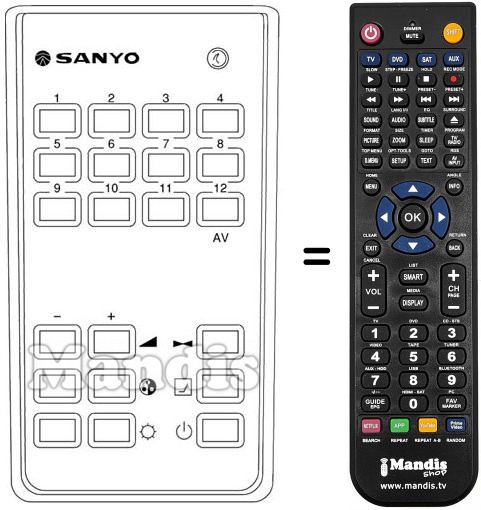 Télécommande qui remplace celle d'origine car elle possède les mêmes fonctions.