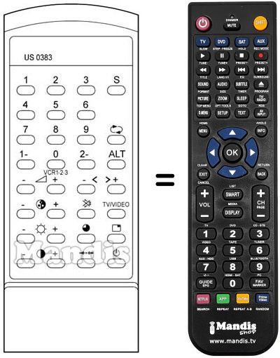 Télécommande qui remplace celle d'origine car elle possède les mêmes fonctions.