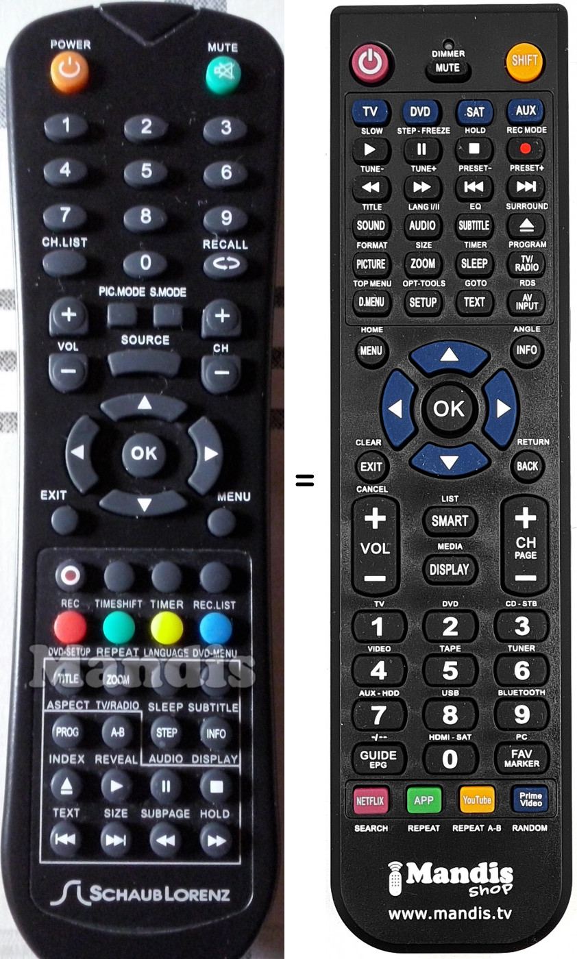 Télécommande qui remplace celle d'origine car elle possède les mêmes fonctions.