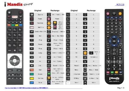 Un document est inclus pour vous aider à utiliser facilement la nouvelle télécommande, en indiquant la correspondance des boutons.