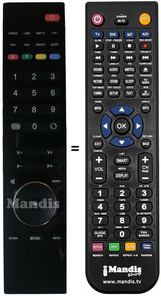 Télécommande qui remplace celle d'origine car elle possède les mêmes fonctions.
