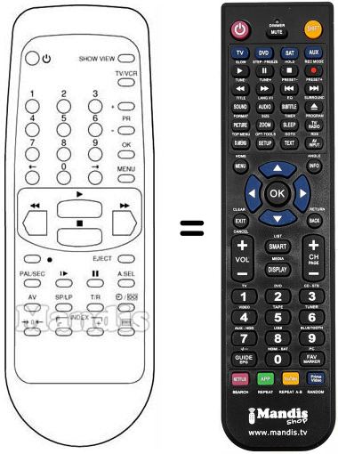 Télécommande qui remplace celle d'origine car elle possède les mêmes fonctions.