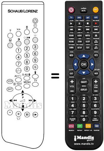 Télécommande qui remplace celle d'origine car elle possède les mêmes fonctions.