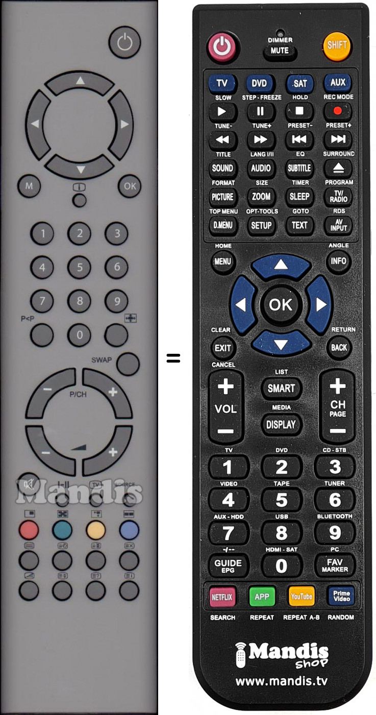 Télécommande qui remplace celle d'origine car elle possède les mêmes fonctions.