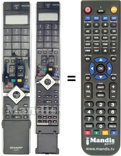 Ci-dessous, nous vous montrerons la correspondance entre chaque bouton de la télécommande d'origine et le bouton qui effectue la même fonction sur la télécommande de remplacement. Dans certains cas, vous devrez peut-être appuyer sur la touche SHIFT avant d'appuyer sur un autre bouton pour effectuer certaines actions. Ces fonctions supplémentaires sont souvent peu utilisées et sont incluses pour faciliter la compréhension de la télécommande de remplacement, ou parce que la télécommande d'origine comporte plus de boutons que son équivalent.