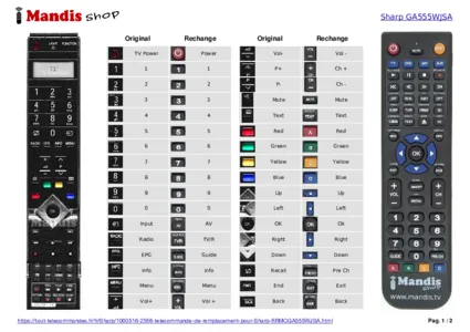 Cette télécommande remplace la plupart des fonctions de votre RRMCGA555WJSA. Il ne s'agit pas d'une télécommande universelle, mais d'une copie avec la plupart des touches et des fonctions de votre télécommande d'origine.