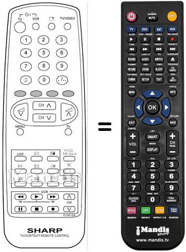 Télécommande rechange G 1061 SA pour téléviseurs de la marque Sharp.