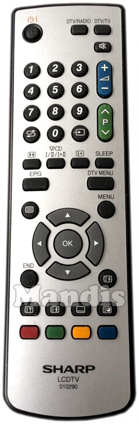 Télécommande d'origine 010290 pour téléviseurs de la marque Sharp. Il s'agit d'un modèle de télécommande d'origine.