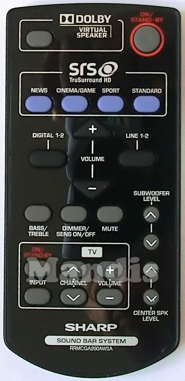 Télécommande d'origine RRMCGA200AWSA pour soundbar de la marque Sharp. Il s'agit d'un modèle de télécommande d'origine.
