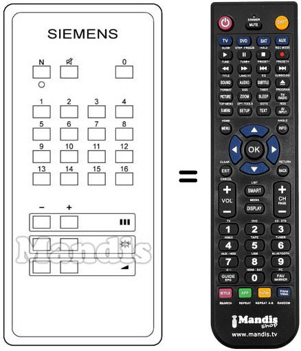 Télécommande qui remplace celle d'origine car elle possède les mêmes fonctions.