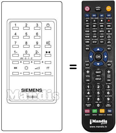 Télécommande qui remplace celle d'origine car elle possède les mêmes fonctions.