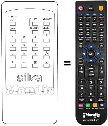 Télécommande qui remplace la télécommande d'origine CTV 1444 RC car elle possède les mêmes fonctions.