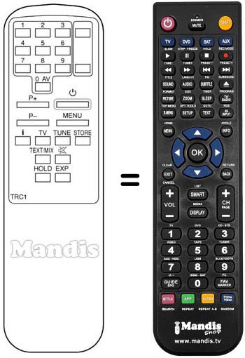Télécommande qui remplace la télécommande d'origine TRC 1 car elle possède les mêmes fonctions.