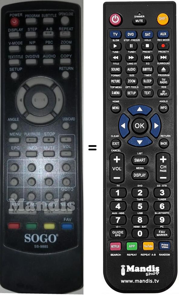Accueil > Marques > Télécommandes Sogo > Télécommande pour Sogo SS9885