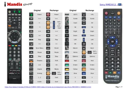 Un document est inclus pour vous aider à utiliser facilement la nouvelle télécommande, en indiquant la correspondance des boutons.