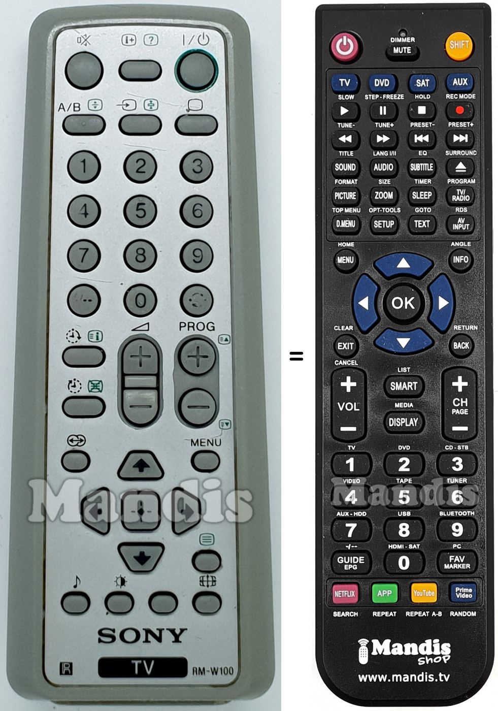 Cette télécommande remplace entièrement votre RM-W100 (147800711) et offre toutes les fonctions de l'originale.