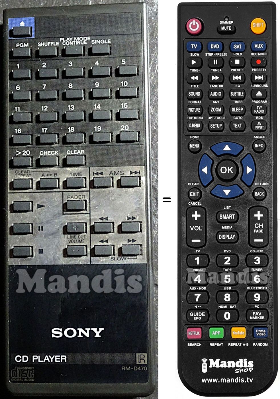 Accueil > Marques > Télécommandes Sony > Télécommande pour Sony RM-D470