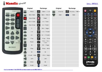 Cette télécommande remplace entièrement votre RMT-835 (147927551) et offre toutes les fonctions de l'originale.
