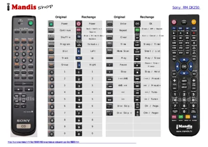 Un document est inclus pour vous aider à utiliser facilement la nouvelle télécommande, en indiquant la correspondance des boutons.