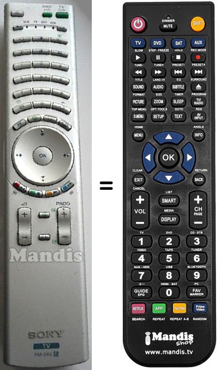 Télécommande qui remplace la télécommande d'origine RM-940 (147815911) car elle possède les mêmes fonctions.