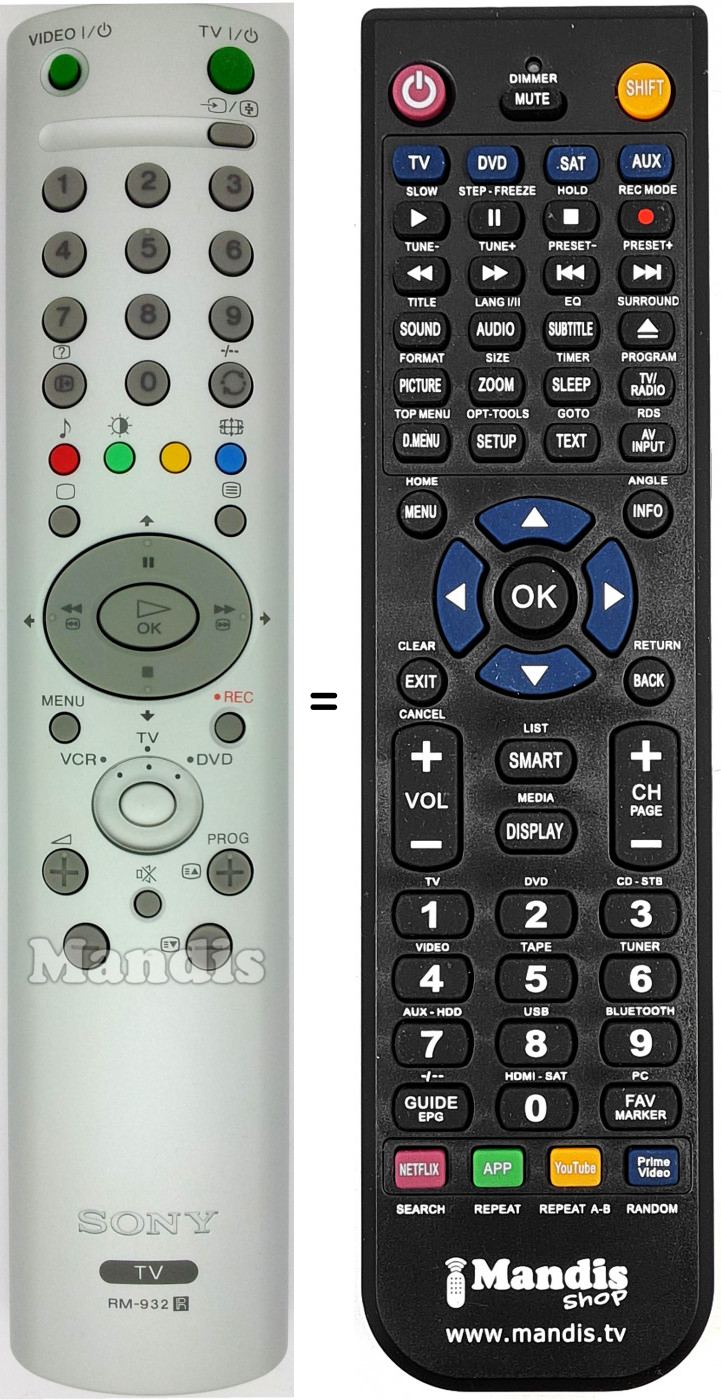 Télécommande qui remplace la télécommande d'origine RM 932 (147670212) car elle possède les mêmes fonctions.