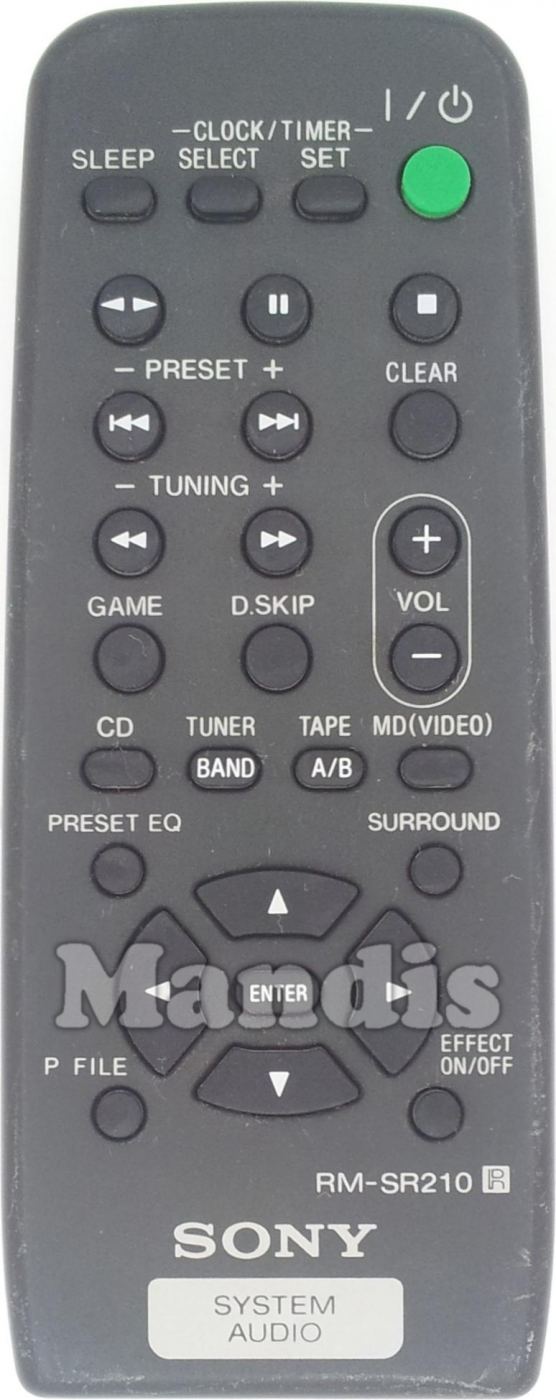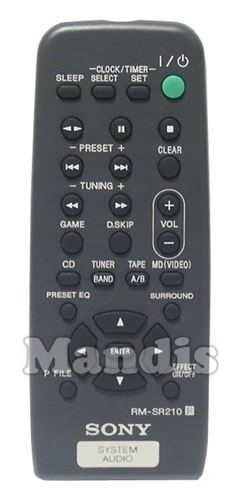 Télécommande d'origine RM-SR210 (147650311) pour chaîne hi-fi de la marque Sony. Il s'agit d'un modèle de télécommande d'origine.