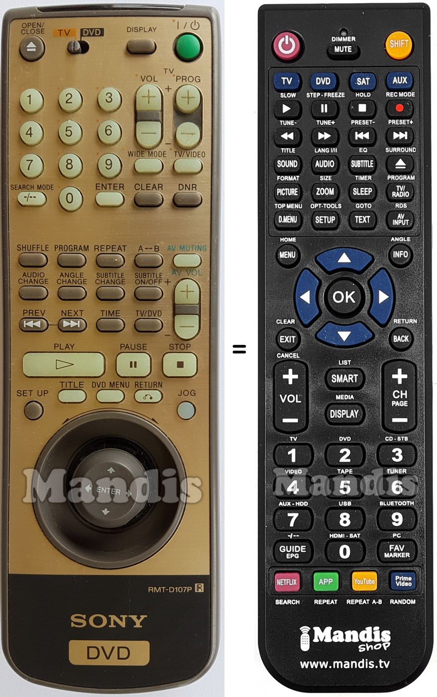 Télécommande équivalente Sony RMTD107PDisponible en stock27,50 € (TVA incluse)