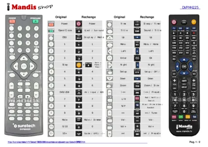 Cette télécommande remplace entièrement votre DVPMH225 et offre toutes les fonctions de l'originale.