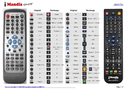 Un document est inclus pour vous aider à utiliser facilement la nouvelle télécommande, en indiquant la correspondance des boutons.