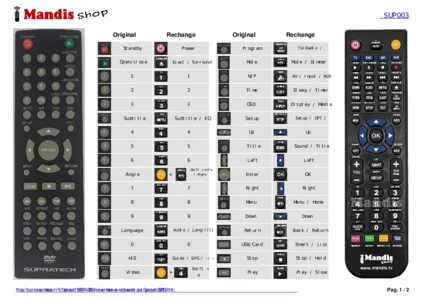 Un document est inclus pour vous aider à utiliser facilement la nouvelle télécommande, en indiquant la correspondance des boutons.