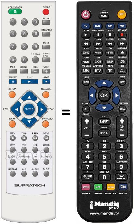 Télécommande qui remplace celle d'origine car elle possède les mêmes fonctions.