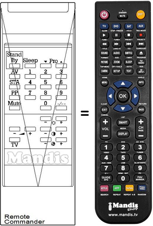 Télécommande qui remplace celle d'origine car elle possède les mêmes fonctions.