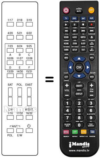 Télécommande qui remplace celle d'origine car elle possède les mêmes fonctions.