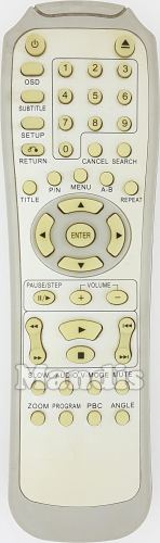 Power, Eject, OSD, Subtitle, Setup, Return, 1, 2, 3, 4, 5, 6, 7, 8, 9, 0, Cancel, Search, Title, P/N, Menu, A-B, Repeat, Up, Down, Left, Right, Enter, Pause/Step, Volume+, Volume-, <<, >>, Play, Stop, I<<, >>I, Slow, Audio, V-Mode, Mute, Zoom, Program, PBC, Angle
