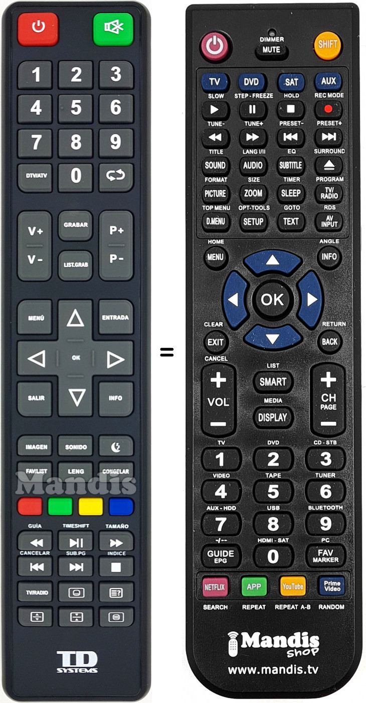 Télécommande qui remplace celle d'origine car elle possède les mêmes fonctions.