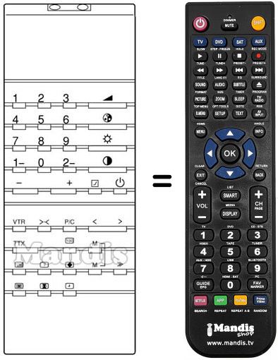 Télécommande qui remplace celle d'origine car elle possède les mêmes fonctions.