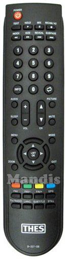 Comandament a distància original B-327-SB que serveix per téléviseurs de la marca THES. Es tracta d'un model original de comandament a distància.