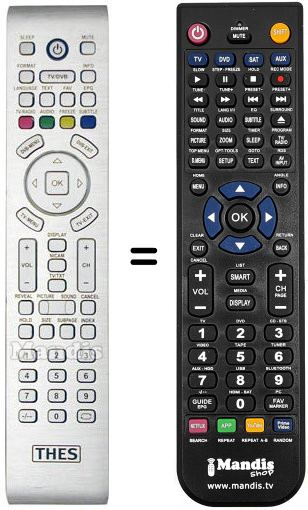 Télécommande qui remplace celle d'origine car elle possède les mêmes fonctions.