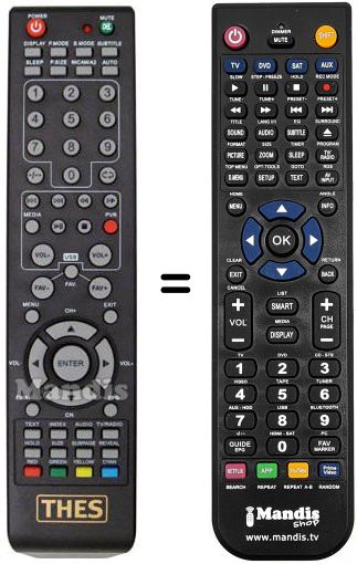 Télécommande qui remplace celle d'origine car elle possède les mêmes fonctions.
