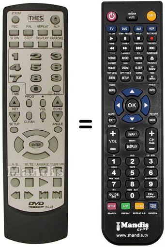 Télécommande qui remplace celle d'origine car elle possède les mêmes fonctions.