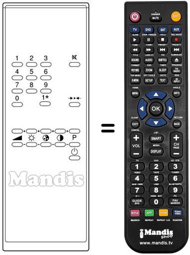 Télécommande qui remplace celle d'origine car elle possède les mêmes fonctions.