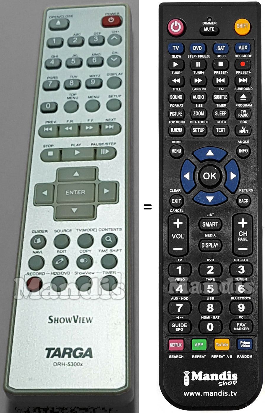 Cette télécommande remplace entièrement votre DRH-5300X et offre toutes les fonctions de l'originale.